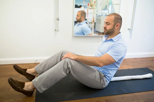 3. Bend your knees with your feet on the floor so that you are balanced on the towel.